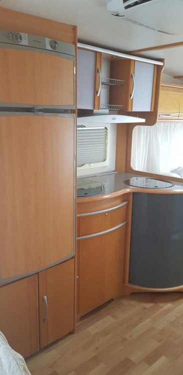 aragaz, frigider, chiuveta, toate pe drapta cum intri in rulota. Am pe cineva care mi-a subliniat ca este important sa nu am frigiderul cu ventilatia in cort...
