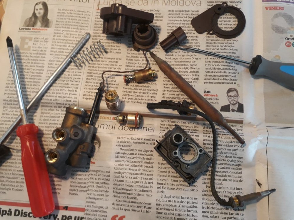 Aseara, cugetand eu la ultima tigara inainte de culcare, am inceput sa ma gandesc la principiul de functionare a robinetului/ valva sau cum s-o numi si am realizat ca in primul post din topic am zis o tampenie. Atunci cand am zis ca suflu in robinet si iese aerul doar pe circuitul de flacara de veghe. Asa s-a intamplat si dupa ce am demontat/curatat/uns si am realizat ca e normal sa fie asa, atata timp cat termocupla nu sta intr-o flacara iar eu apas. Am realizat ca practic inauntru sunt 2 circuite ale gazului, primul functioneaza strict la apasarea cu mana pe buton (sau la destinderea termostatului) , al doilea intra in functiune doar odata cu eliberarea butonului si activarea micului electromagnet de catre termocupla.
