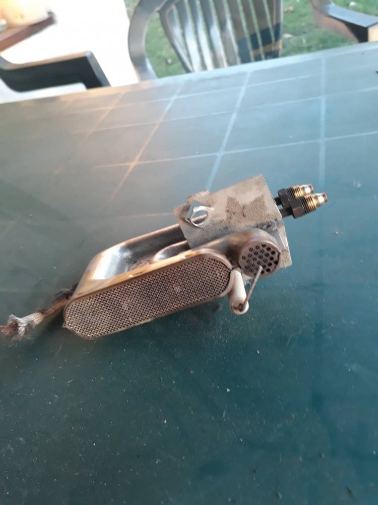 Ori il demontezi si-l curati...e posibil sa aiba orificiul obturat de "vaselina" intarita -varianta cea mai sigura si de recomandat, ori il sufli cu aer sub presiune si, daca reusesti sa-l desfunzi, eventual il sufli si cu un spray de curatat carburatorul...dar nu trebuie scufundat in diluant sau alt dizolvant sa nu se "spele" acea vaselina ca altfel va trebui demontat si "uns" din nou.
