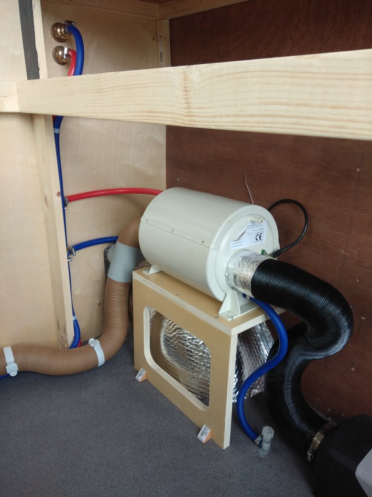 Am facut un suport si montat boilerul Truma pentru apa calda, boiler achizitionat de la unul din colegii rulotisti de pe forum. Transportat in Irlanda. Ii multumesc si pe aceasta cale pentru ajutor.