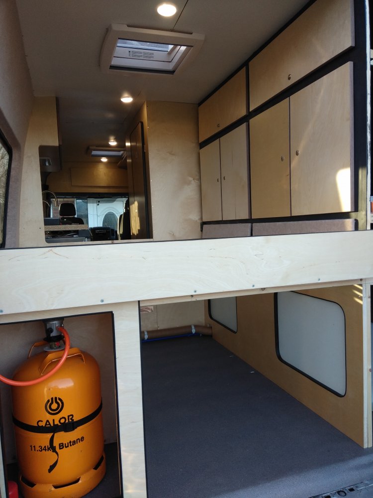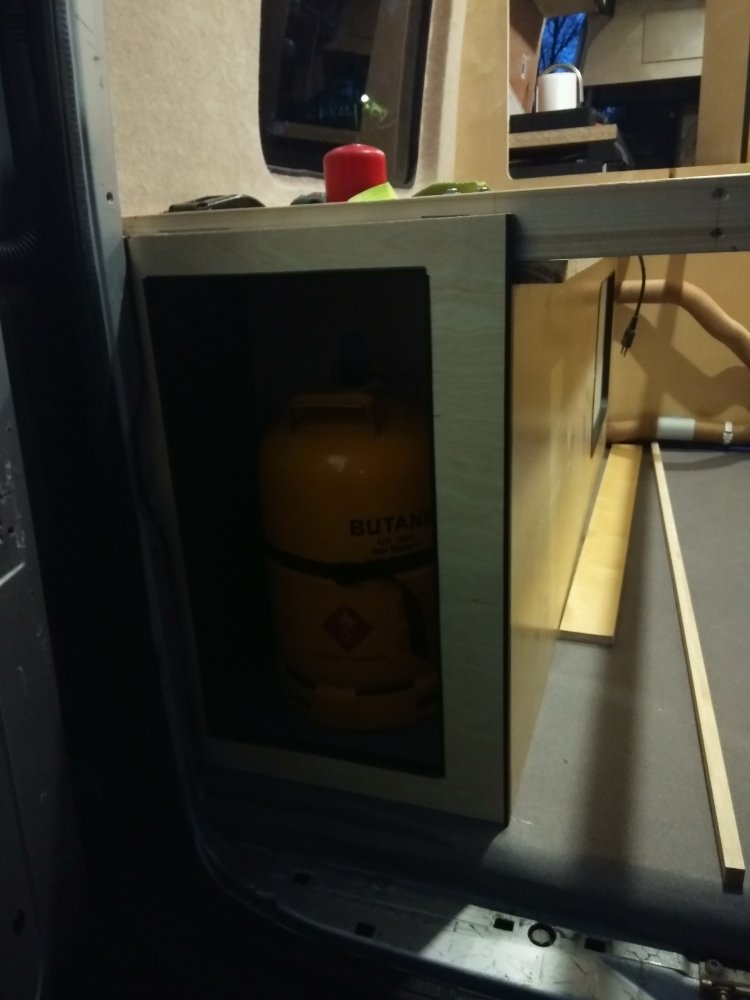 Per scurt, am confectionat si montat panoul din partea dreapta, are 2 deschizaturi prin culisare ce imi permite sa ajung la boiler/incalzitor si instalatiile aferente plus ca mai este loc de depozitat cate ceva si acolo. Am terminat si cutia buteliei, mai trebuie sa confectionez si sa montez usa. Este etansata cu silicon asa cum prevede legislatia in domeniu. Nu se vede bine, voi mai face poze pe lumina.
