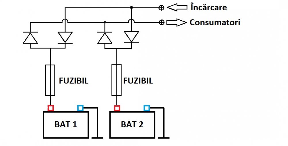Pentru cei care aleg sa foloseasca doua sau mai multe baterii in paralel, am o propunere de izolare (separare) a acestora. Daca nu le separati, bateria mai slaba o va slabi si pe cea sanatoasa, murind eroic impreuna. Aceasta izolare simpla nu permite curentului sa se scurga spre bateria mai descarcata. Recomand deasemenea montarea unor sigurante fuzibile in apropierea bornelor, pentru a evita orice neplacere in caz de scurtcircuit. Capacitatile bateriilor sunt mari, cablurile au sectiuni mari, un scurtcircuit va provoca fara indoiala un incendiu puternic.
