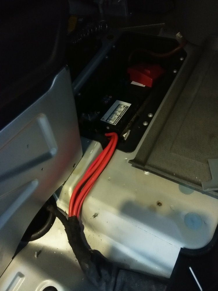 Plusul scos pe sub masina si dus in fata catre compartimentul bateriei unde se gaseste si jonctiunea sigurantelor de putere a masinii: