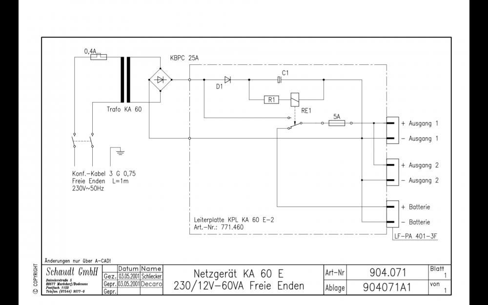 Salut, ce ai tu acolo e doar un redresor ce incarca bateria si alimenteaza in acelasi timp alti consumatori la 12 v pe (ausgang 1 si 2). Cablul alb e alimentarea 230 v si ar trebui sa treaca prin siguranta din tabloul rulotei. El incarca bateria si alimenteaza consumatorii de 12 v doar cind rulota e conectata prin priza externa la reteaua de 230 v.