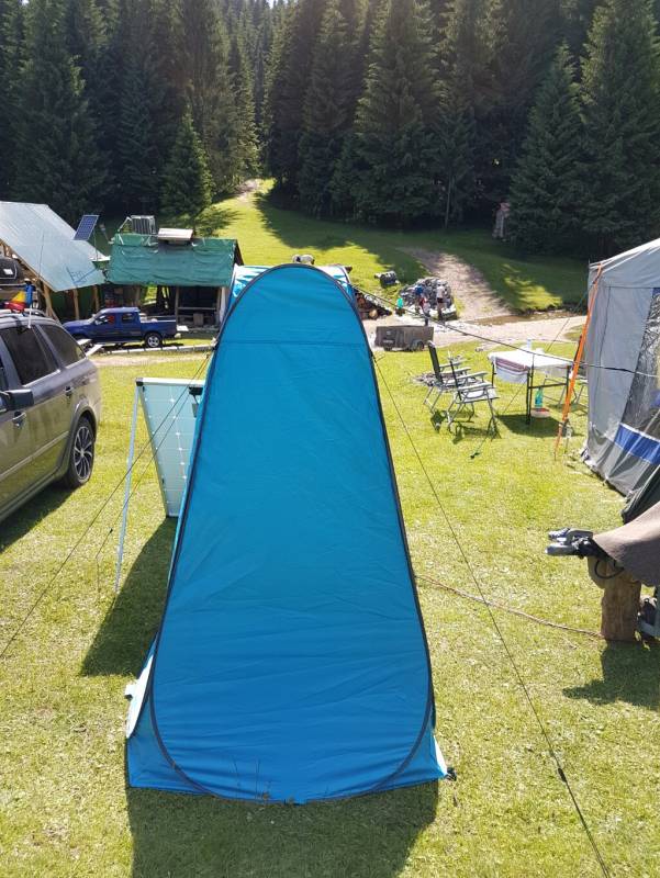 Tot pe ultima suta de metri, am revizuit si completat cortul si instalatia de dus cu o canistra de 25litri, Dedeman Ploiesti, 17 lei.