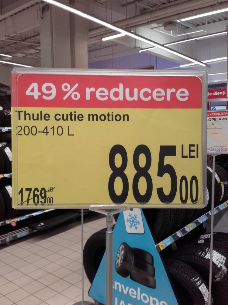 Azi mergand la "clatit ochii' , am vazut o reducere de 50 la suta la .... portbagaj de plafon ( nu spun cosciug..suna urat) magazinul este Carrefour Colentina !! Poate mai sunt colegi care vor pleca in vacanta !! Seara buna... si spor baieti !!