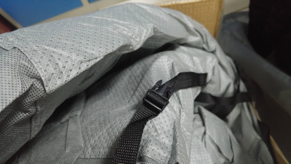 Materialul este foarte bun, dupa cum se observa si in poze. Este respirant, impermeabil si rezistent la UV( spun ei).