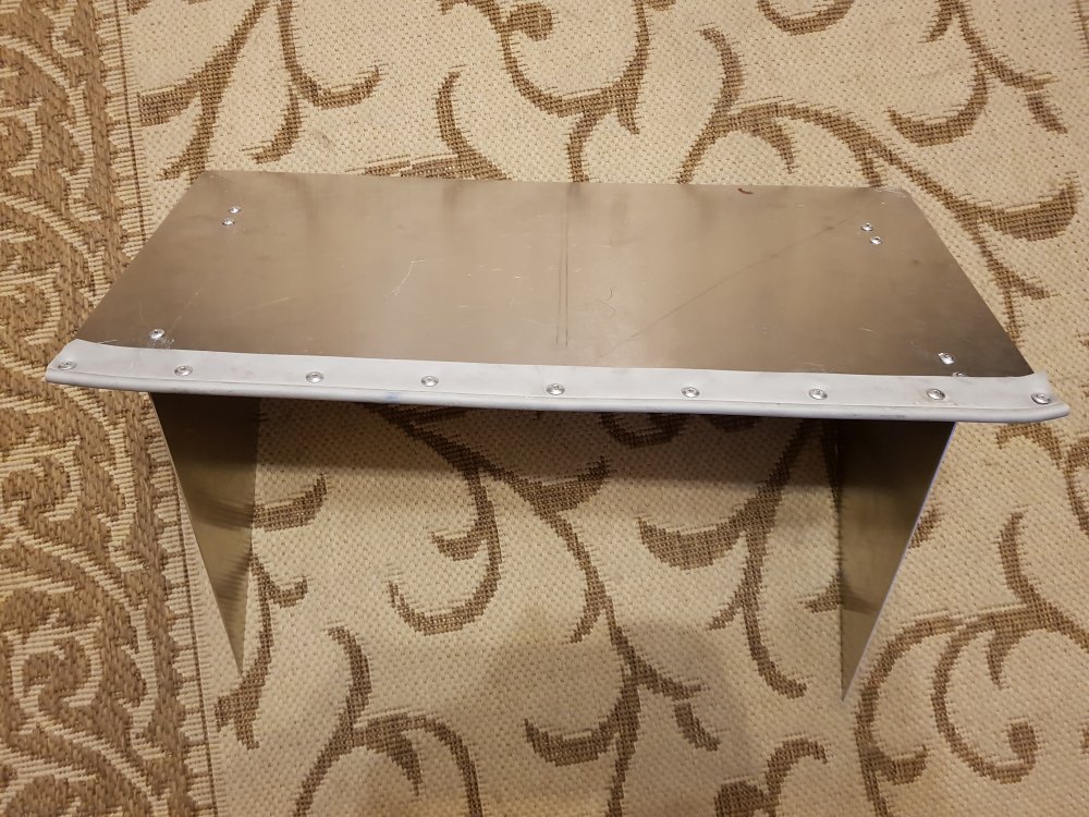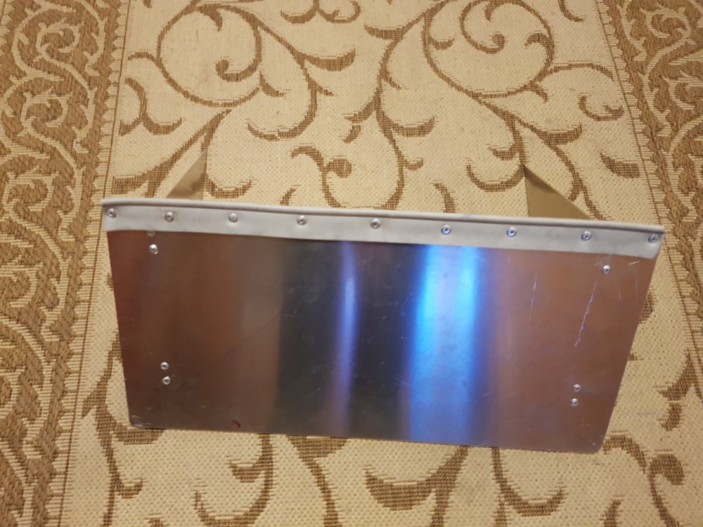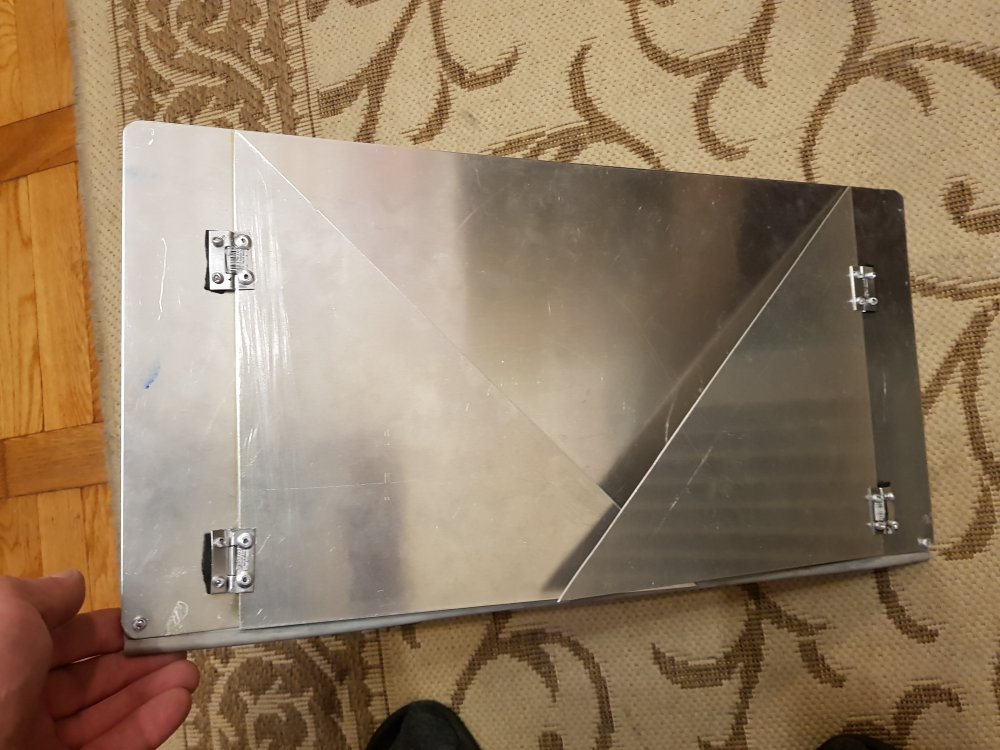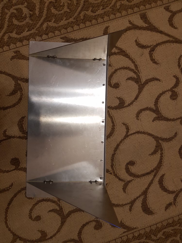 Dint-o tabla de alumini de 25x50cm, am realizat aceasta polita pentru diverse intrebuintari in exteriorul rulotei. Eventual chiar si pentru tv sau radio in cort.O voi prinde de sina cea asemanatoare pe care se baga cortul....si..... picioarele de sustinere le-am facut cu 2 bslamale sa se rabateze usor pentru a fi transportata si pentru optimizarea spatiului.