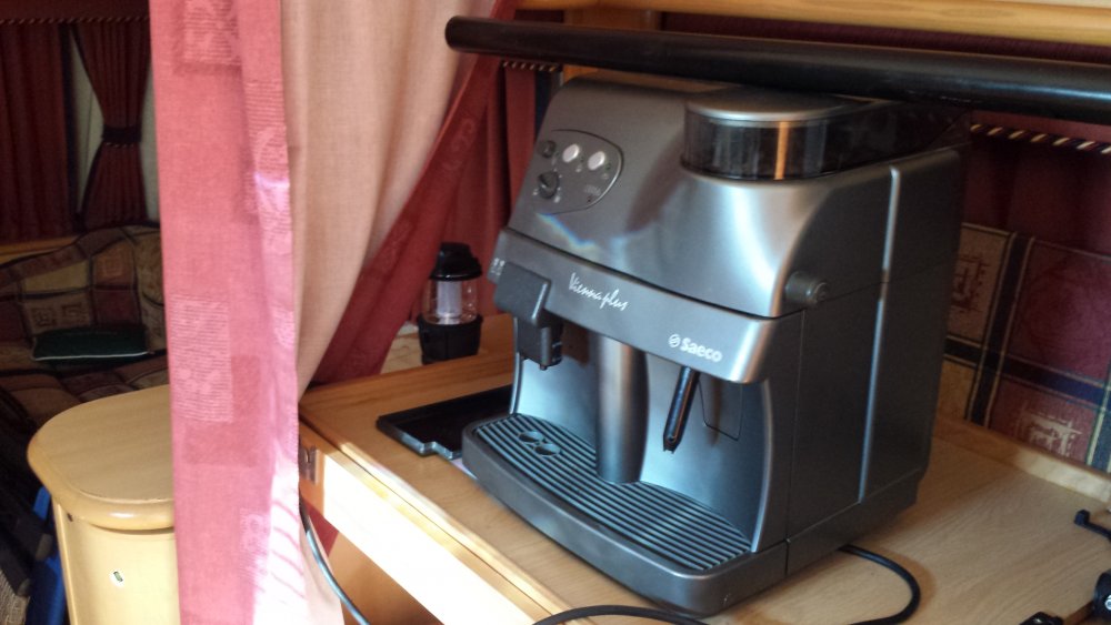 Tot la capitolul dotari achizitionate am luat si un frigider de 87 litri si un expresor Saeco Vienna. Frigiderul l-am luat pt ca cel al rulotei e cam mic si nu incap prea multe in el.Iar expresorul e luat de la o firma ce se ocupa cu service-ul automatelor de cafea , fiind obisnuit cu acest tip de cafea am decis sa am unul si cand plec pe traseu.