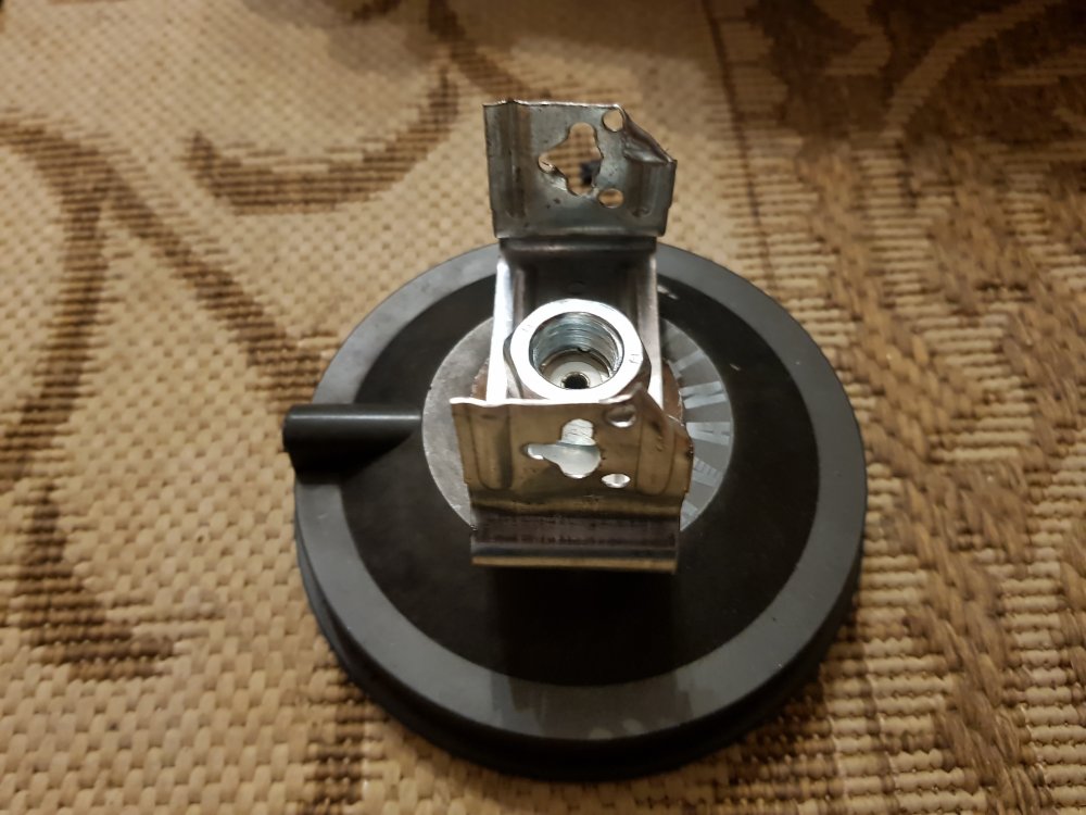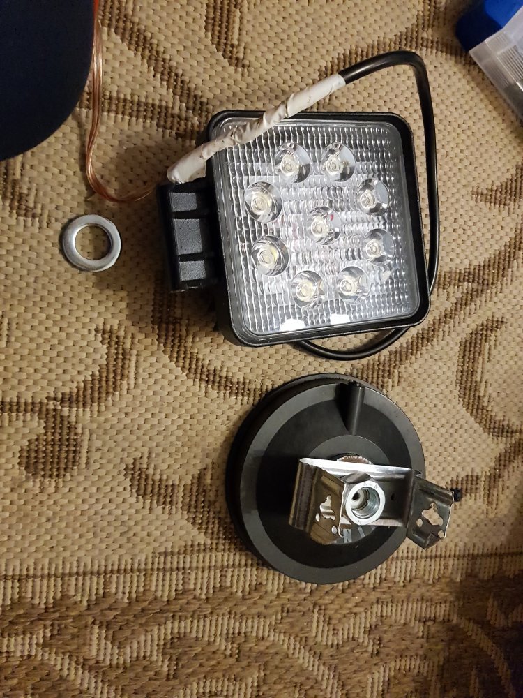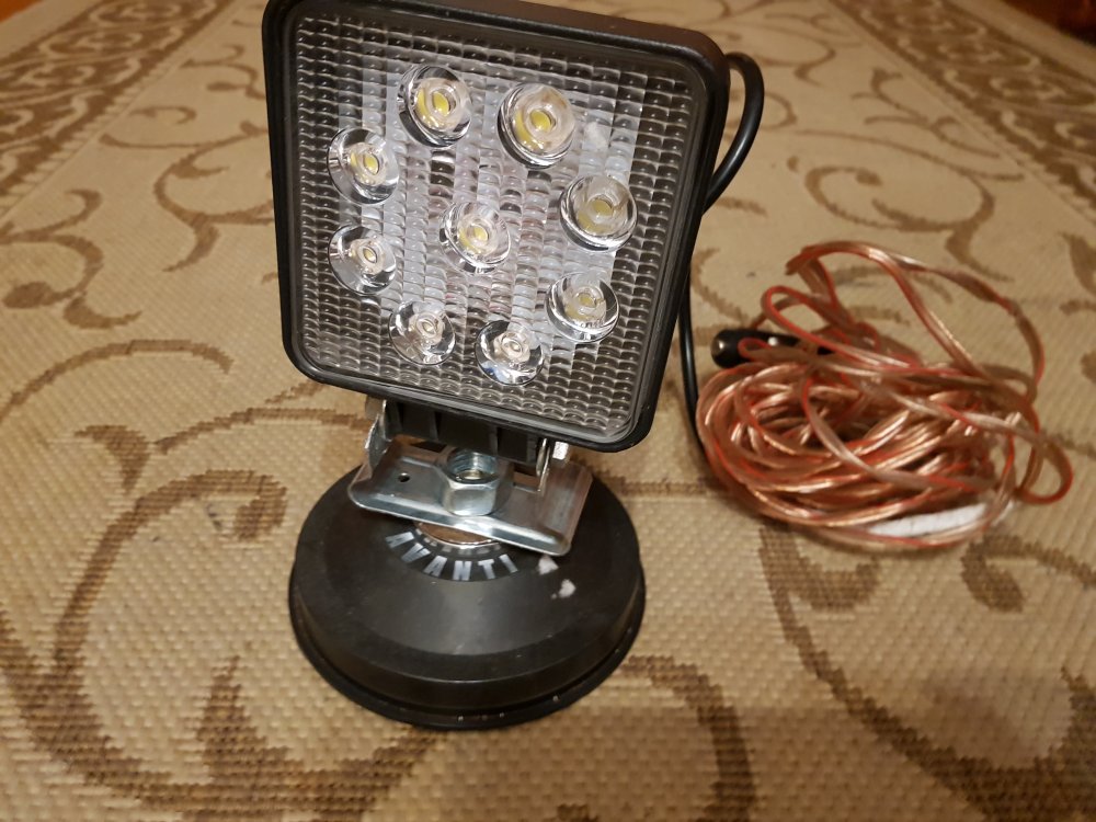 Azi am mai confectionat ceva. Dintr-un proiector care il aveam si o talpa magnetica de la o antena de emisie/receptie, am luat o tabla din aluminiu in forma de U, un surub cu piulita si  m-am gandit ca se portiveste bine pe la rulota si chiar la masina. O pot prinde pe masina ca are magnet super tare si o pot pune si pe masa undeva pe la rulota si ii pot regla unghiul de lumina mai in sus sau jos.