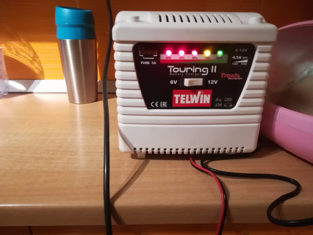 Când am ajuns acasă, am pus aparatul pe ea și mi-a afișat 13, 15 V. Am pus și redresor, la care după 3-5 sec. s-a aprins și ledul de culoare verde care indică 100% baterie încărcată.