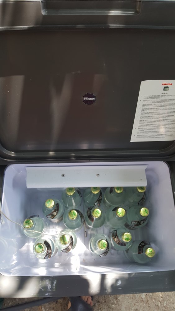 Si probat figider de 75w daca merge de la baterie pe invertor de 600w. L- am bagat in priza si in el aveam 27° si afara 32° iar intr-o ora a scazut la -0.7° in figider si afara 30° pozitionat in soare. In baterie aveam 14Ah apoi sa stabilizat la 12, 9Ah, panoul de 150w mergand dar soarele nu era asa de puternic. Deci il i-au cu mine linistit in concediu pentru a raci lichidele...!