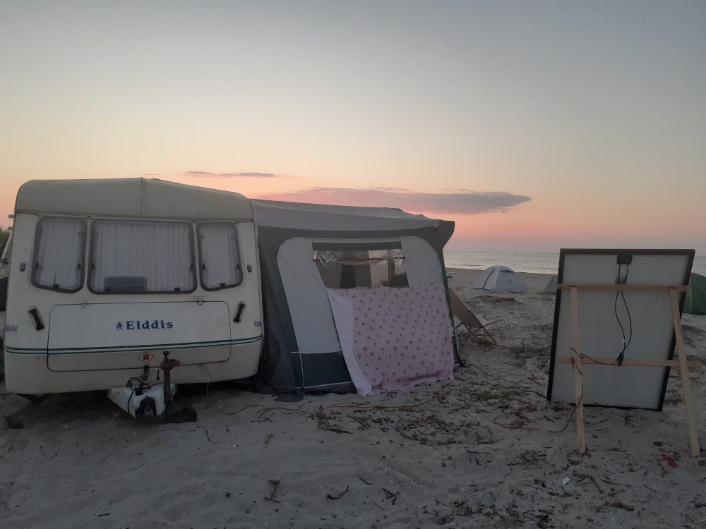 Mergem către locul nostru, garăm rulota, pregătim amplasamentul, montez cortul alături de ajutoarele mele și plecăm repede spre plaja situată la 100m distanță. Vine seara, facem cina și planul pentru ziua ce urmează. Atmosfera este foarte liniștită, feerică pot spune datorită vegetației. Am discutat cu proprietarii și mi-au spus că au deschis prima oara în anul 1980.