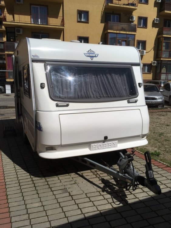 Am cumparat-o acum mai bine de un an insa nu am apucat sa o prezint. Hobby 400 din 1997. Se comporta super la drum. Usor de manevrat si de tras. Este suficient de spatioasa pentru 2 persoane si un golden retriver. Am facut ceva modificari la rezerva de apa, si anume,  am prelungit furtunul si cablul de la pompa de apa si am pus 3 bidoane de 20l in portbagajul din fata. Am pus si o baterie de barca de la decathlon de 110 ah si o banda led la locul de luat masa de la intrare.