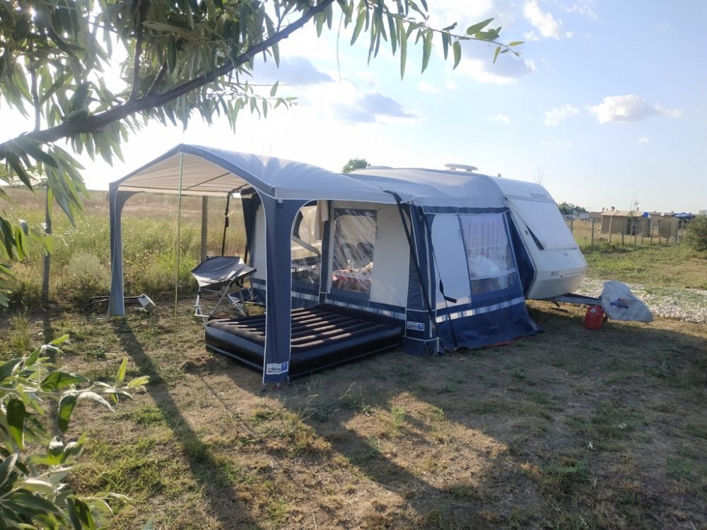 Rulotă Dethleffs Family 1998 2 zone de dormit separate + veranda + cort mare pe toată suprafața , cu dus interior 2x150 panouri solare, invertor sinus-pur 1000W, acumulator solar - OFF-ON camping