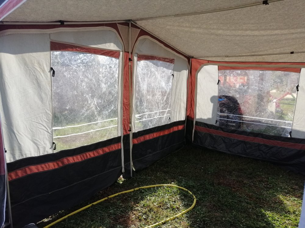 Cortul l-am primit de la cineva ce l-a montat pe o rulotă într-un camping în zona montană și a avut parte de o mică furtună. Nu a fost ancorat corect și a cedat din acele bare. În rest cortul și mai ales ce era important, rulota, nu au avut de suferit. Referitor la barele din aluminiu, cu siguranță au rezistență mai scăzută decat cele din oțel, însa suficientă pentru ce sunt folosite. Aș putea face o analogie cu ochiurile de ancorare a cortului ce sunt recomandate din plastic și nu din metal pentru ca în caz de forță majoră să cedeze din plastic și nu din prinderea de pe rulotă.