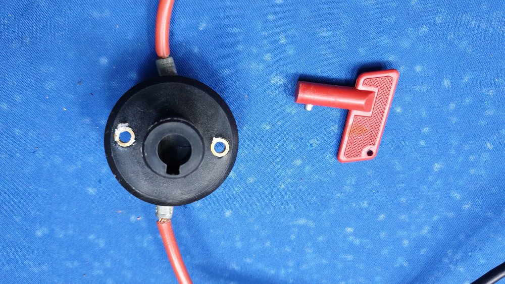 Acest heblu este necesar pentru a izola alimentarea moverului de acumulator. Este un intrerupator de 180 A cc si se gaseste si separat de cumparat. La mine a venit si cu priza  care se fixa in peretele rulotei, asemanator cu priza de 220 V.