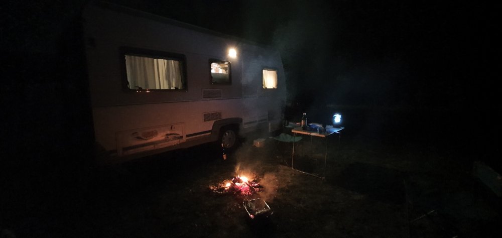 Revenind la subiect - camping-ul e frumos, e mare, e curat. Prize de curent peste tot, apa doar la intrare. Tot ce cautam intr-un camping e liniste si utilitati cat mai aproape. Spre amiaza, cand savuram un vin rosu, la nici 2m de usa noastra a oprit un RV de Cluj cu doi barbati in el. Ne-au salutat si au inceput despachetatul&campatul. Wait, what?! La cat de mare si de gol era campingul, ei campeaza usa in usa cu noi? WTF?! Am sarit ca ars, am strans tot, legat rulota si ne-am mutat 100m mai departe. No comment...