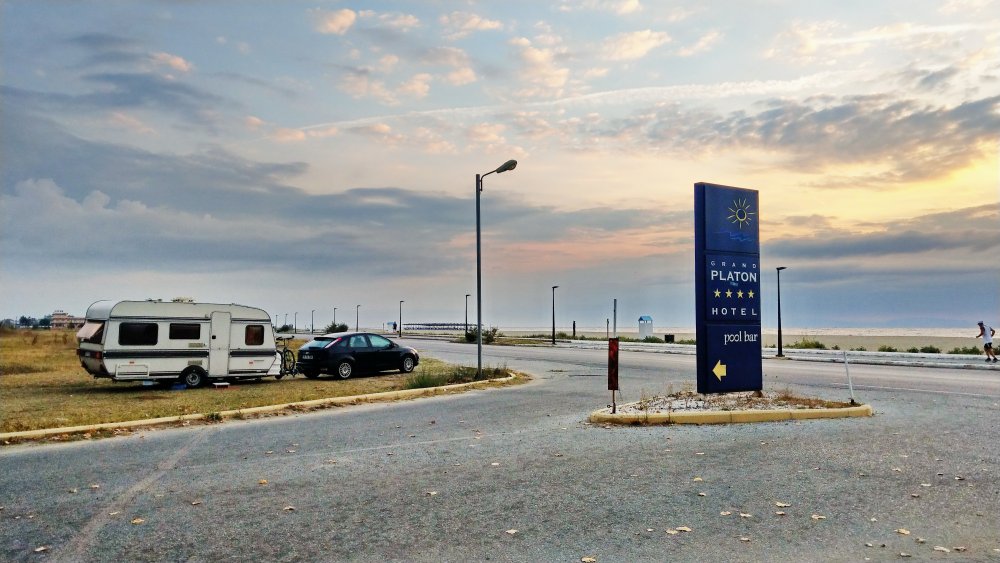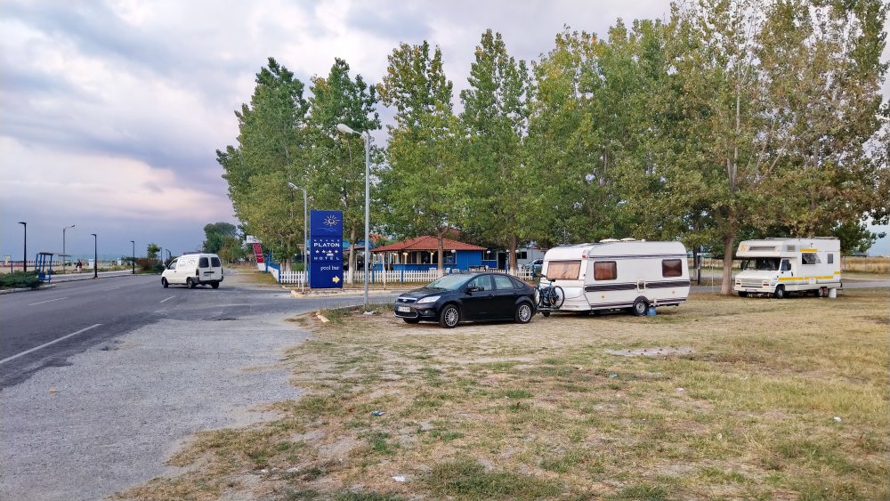 Se spune că pe timpul verii plajele grecești devin o extensie a litoralului românesc, lucru dovedit când soția se întâlnește cu o prietenă cu care nu se mai văzuse de multă vreme. Șansele pentru o asemenea întâlnire erau mai mici decât să se intersecteze pe stradă în București. Totodată am rămas surprins să văd o familie cu doi copii din România campată off, în pădurea de pini, pe un teren în pantă și cu multă umbră. Spun în ideea că nu existau facilități pt dușuri sau loc unde se putea deversa caseta chimică și nici curent electric.