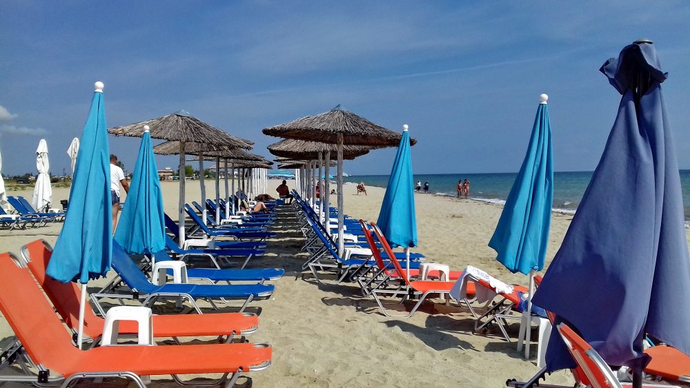 Pentru dimineața următoare alegem Tigania beach unde am văzut recenziile cele mai mari pentru o plajă din Sithonia. Este la scurtă distanță de Sarti, loc până unde noi facem circa 45 min. Noi am parcat mașina undeva pe deal, însă aveam să aflăm că se putea ajunge până în apropierea plajei. A fost o idee bună să plecăm devreme, am ajuns la ora 9:10 și mai erau doar 5 umbrele libere. Ocupăm două dintre ele, iar la scurta vreme vine ospătarul să ne ia comanda pentru băuturi. Prețurile destul de ok ținând cont de amenajarea și curățenia exemplare. Umbrelele sunt făcute cu frunze mari ce oferă umbră pe toată perioada zilei, lucru de care ne-am bucurat până târziu. A fost ziua în care am stat cel mai mult lângă apă și totodată plaja noastră preferată.