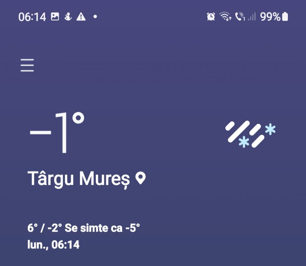 Ovidiu-Betty 5.612 Semnalează Publicat 6 Februarie, 2022 (modificat) Bună dimineața tuturor și o zi de duminică frumoasă să aveți ❗ Vremea la Târgu Mureș... după cum arată barometrul care a mai urcat un pic față de ieri, "bate" spre Veränderlich, adică schimbătoare, dar temperaturile rămân tot scăzute, -5° C care se simt -7° C. Modificat 6 Februarie, 2022 de Ovidiu-Betty 4 Distribuie această postare Link către postare Distribuie pe alte siteuri
