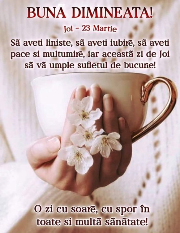Fejer Antal 10.424 Semnalează Publicat 23 Martie, 2023 Bună dimineața! O zi de joi minunată să aveți vă dorim! 1 Distribuie această postare Link către postare Distribuie pe alte siteuri