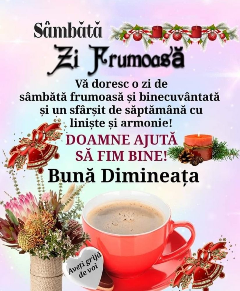 Bună dimineața! O zi de sâmbătă excelentă să aveți și un weekend așa cum doriți!