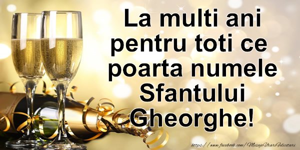 Radu Adrian 509 Semnalează Publicat 23 Aprilie, 2017 LA MULTI ANI CU SĂNĂTATE tuturor celor care poarta numele de Gheorghe, George, ... 2 Distribuie această postare Link către postare Distribuie pe alte siteuri