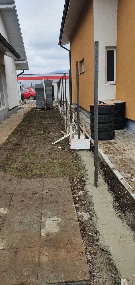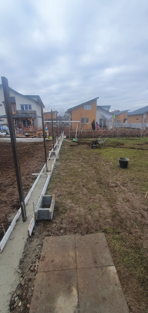 Astazi am turnat elevatia pentru o parte de gard si am trasat locul pentru foisor la care am turnat pahare pentru stalpi :)