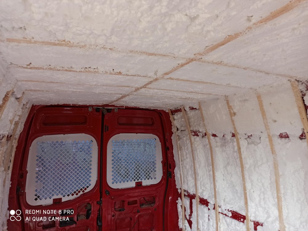 Am izolat cu spuma Easy spray de la Penosil. Cam scumpă, dar specială pentru izolații, curată, și singura pe care am gasit-o care se putea aplica așa: